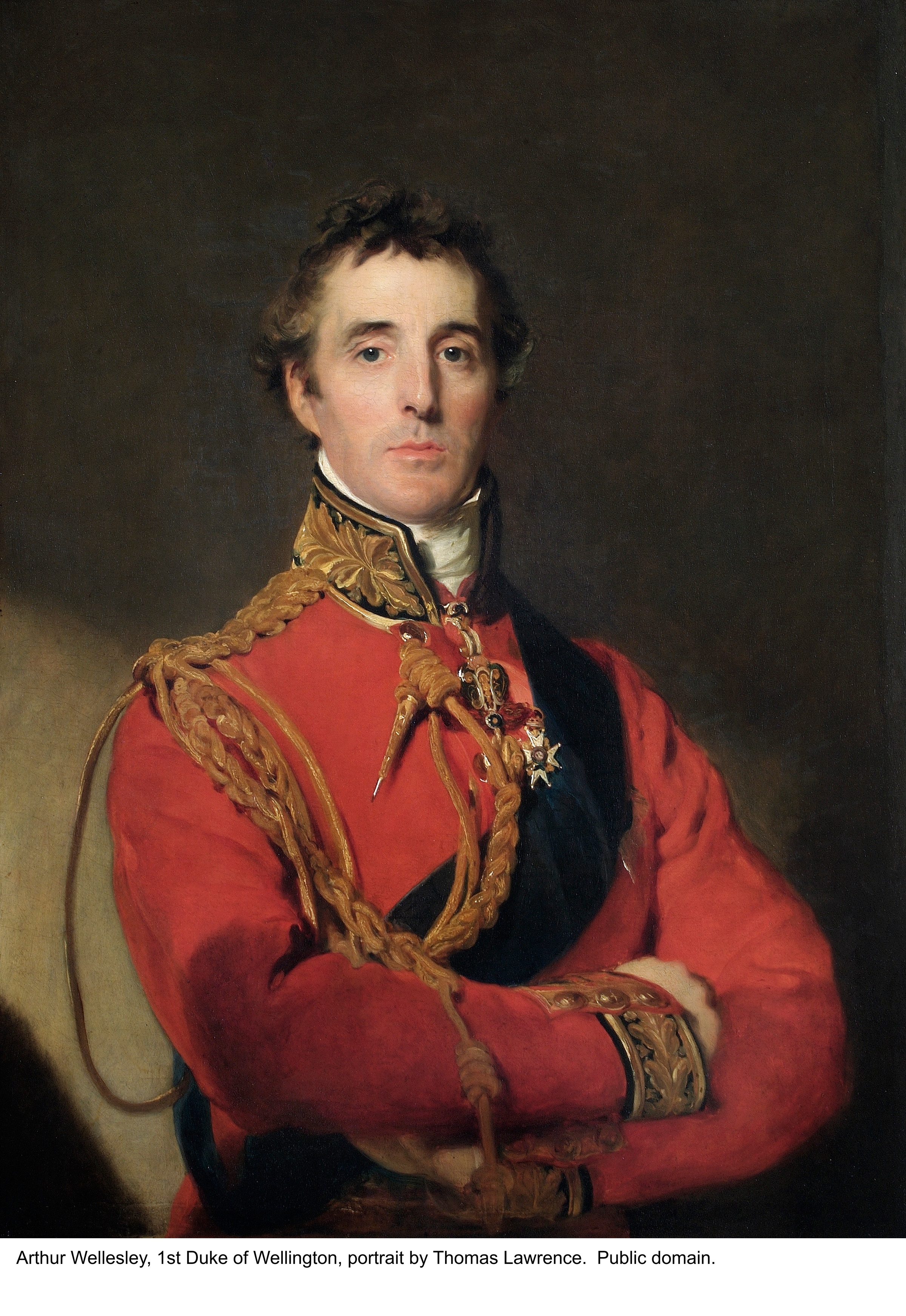 He pursued a political career for a couple of years before deciding to join rejoin the Army in a campaign against Denmark-Norway. He led an infantry brigade in the Second Battle of Copenhagen (a victory which accounts for the name of the warhorse which was his mount at Waterloo). In April 1808 he was promoted to the rank of lieutenant general, and two months later he was dispatched to Portugal to fight against Napoleon’s forces in the Peninsular War. After a number of engagements he secured Portugal and moved into Spain to unite with Spanish troops under General Cuesta. Although Cuesta proved a most unreliable ally, Wellesley won an important victory at Talavera in July 1809, and for this he was ennobled as Viscount Wellington of Talavera and Wellington. The mention of Talavera is self-explanatory but the choice of Wellington is most unusual. At this point he owned no property there. It was only three years later in 1812 that he acquired both the borough and manor of Wellington, leasing the borough back to the townspeople. However, the purchase was managed by his elder brother Richard, not by Arthur himself, as he was still abroad campaigning, the Peninsular War continuing until 1814. With further victories to his name, he was elevated to the title of earl in 1812 and again to duke in 1814.
